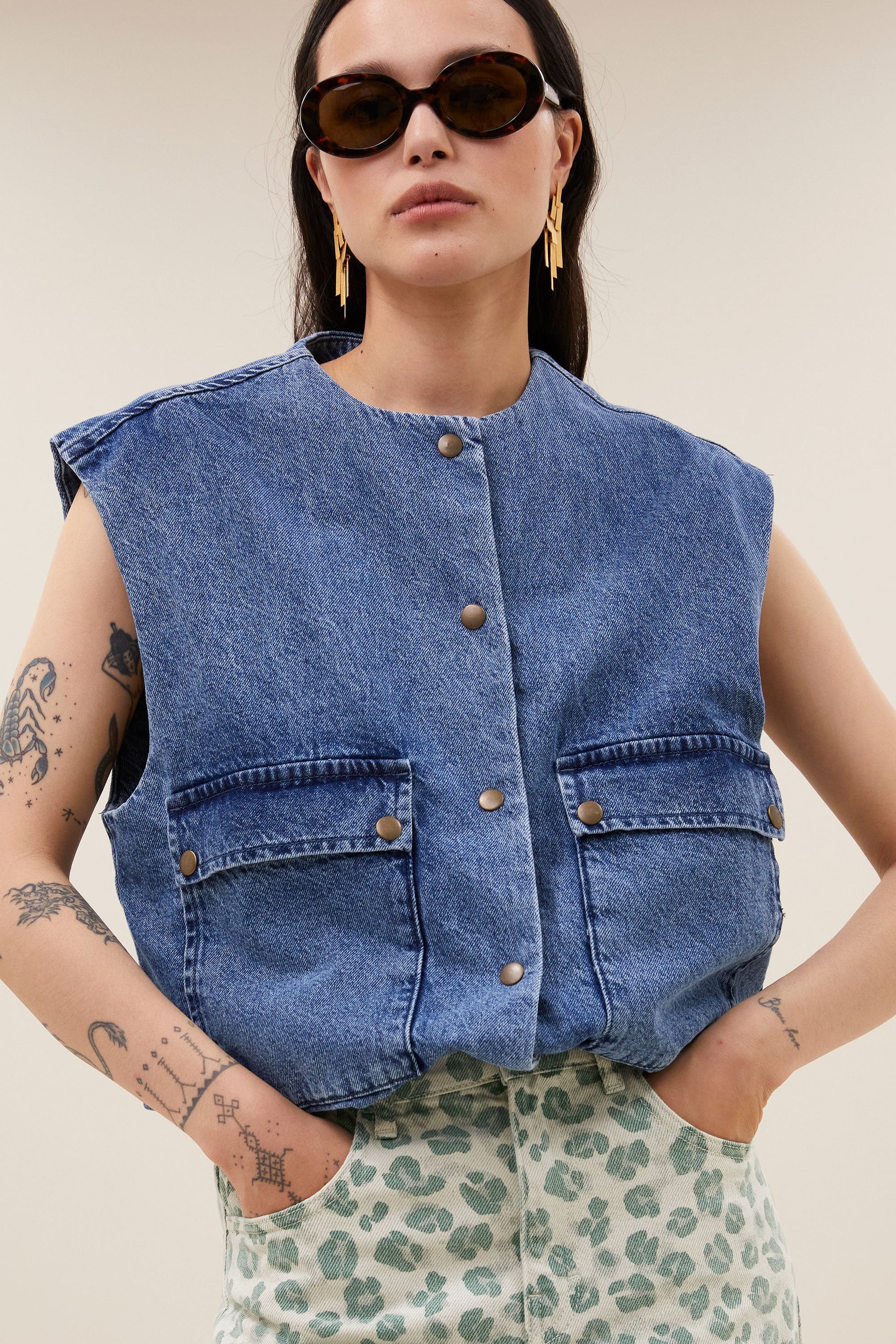 By-Bar Mouwloze Jas Maggie Mid Denim