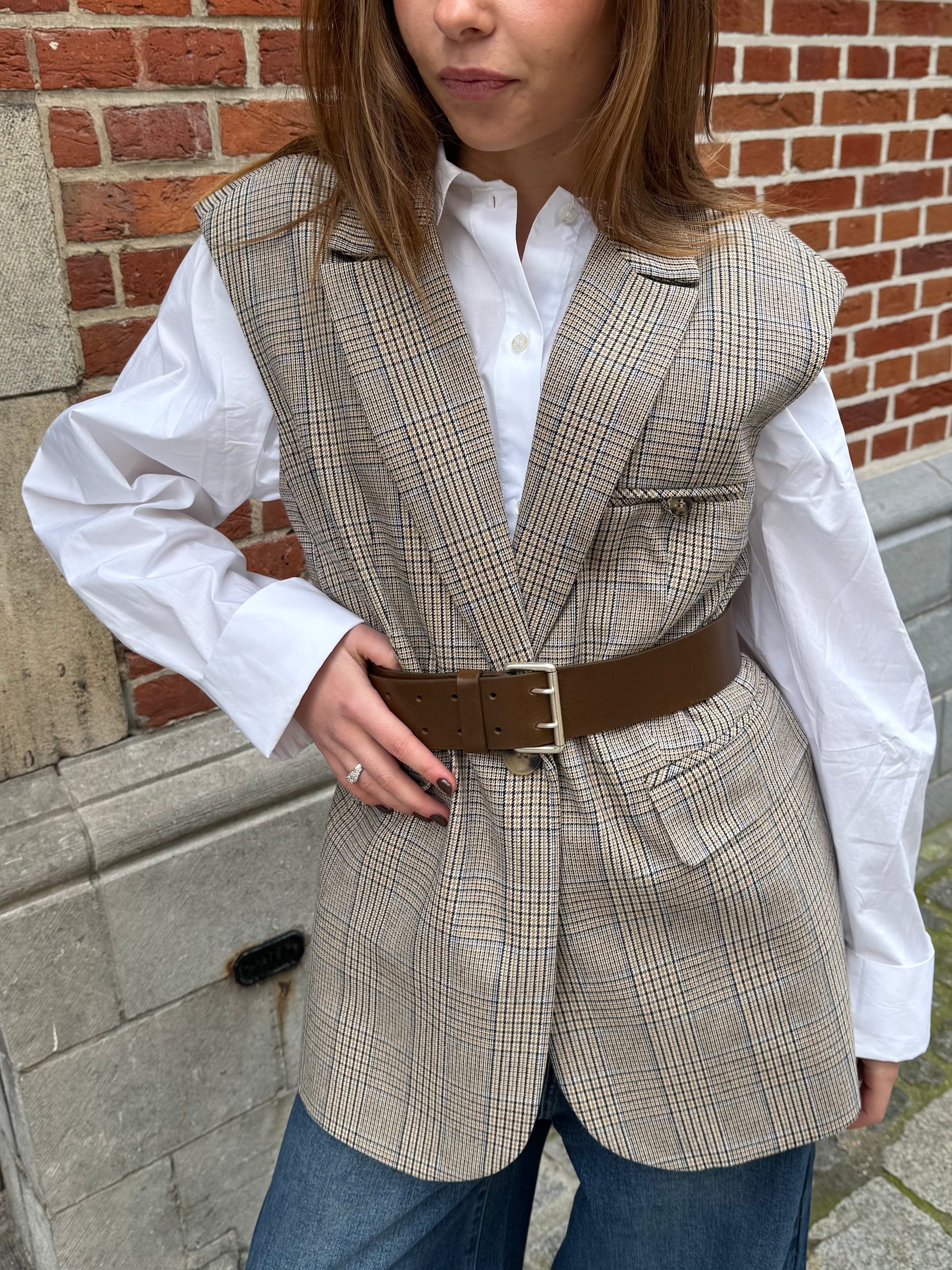 Janice Mouwloze Blazer Marvin Beige Check