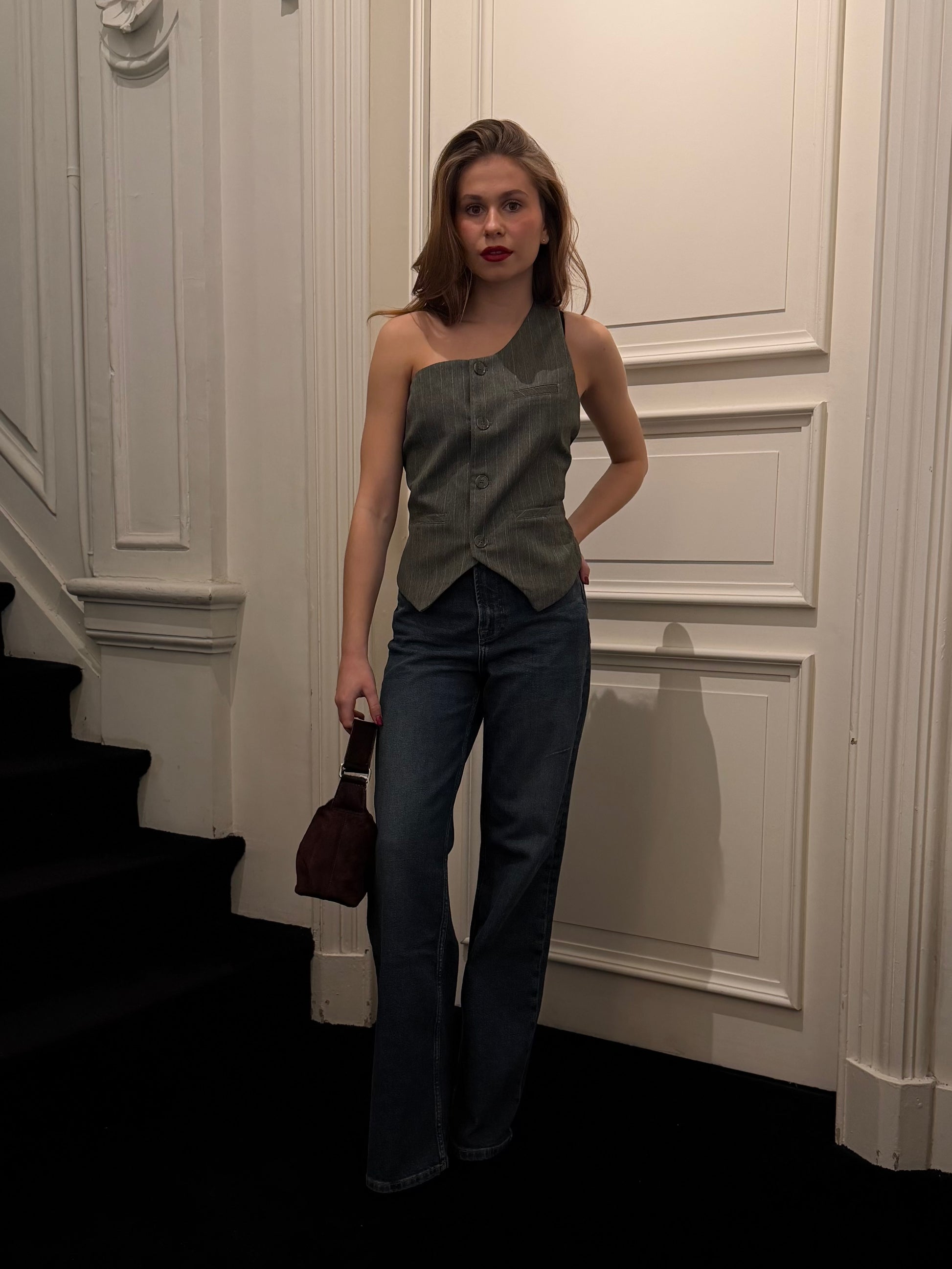 Liv The Label Gilet Lucca Green Pinstripe